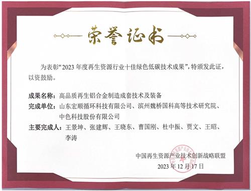 山东宏顺循环科技有限公司成立于2020年11月,注册资本5000万元,由中国宏桥集团与德国顺尔茨集团共同出资成立,专注于再生金属回收和资源再利用。公司旗下重点项目——中德宏顺循环科技产业园,位于山东省滨州市邹平经济技术开发区,致力于建设国际高标准的循环产业园,总投资15亿元,占地面积500余亩,建筑面积30万余平方米,主要围绕“3+N”模式,即报废机动车回收拆解、再生铝、动力电池再生利用三大板块建设,同时从原料端开始搭建可持续的再生资源产业集群,在“中国铝谷 生态邹平”开创绿色拆解、高值回收的循环经济体系。